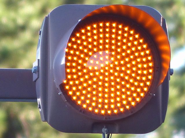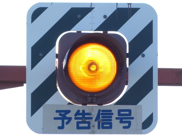 青森県の「予告信号」です。前方の信号機の信号にかかわらず常時、黄点滅です。