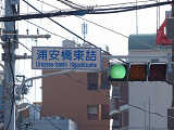 矢印灯器が偏光灯器に直に取り付けられています。矢印は直進矢印です。右折先すぐに貨物線の踏切があり、列車通過時に矢印が点灯すると思われます。