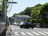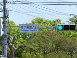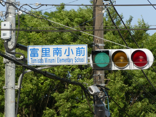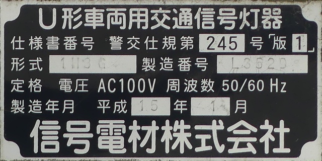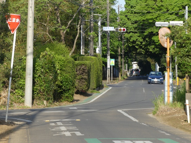 信号交差点の手前に「一時停止」規制があり、その標識を見落とさないよう、青灯のみ距離制限のSD制限フードの灯器が設置されています。制限フードの青灯のみがLED式です。電球式の青灯とSD制限フードの組み合わせでは灯火が暗く見えると判断し、青灯のみLED式としたのでしょうか。
