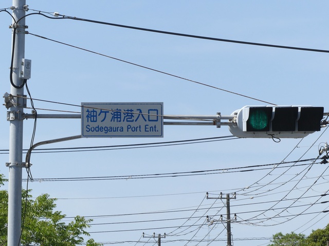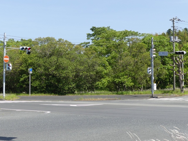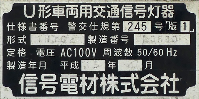 交差道路が中央分離帯の広い道路で右折車線が交差点内で右に首を振った形になっているので、そちらからの誤認防止のために左右制限のSD制限フードの灯器が設置されています。青灯のみがLED式です。電球式の青灯とSD制限フードの組み合わせでは灯火が暗く見えると判断し、青灯のみLED式としたのでしょうか。