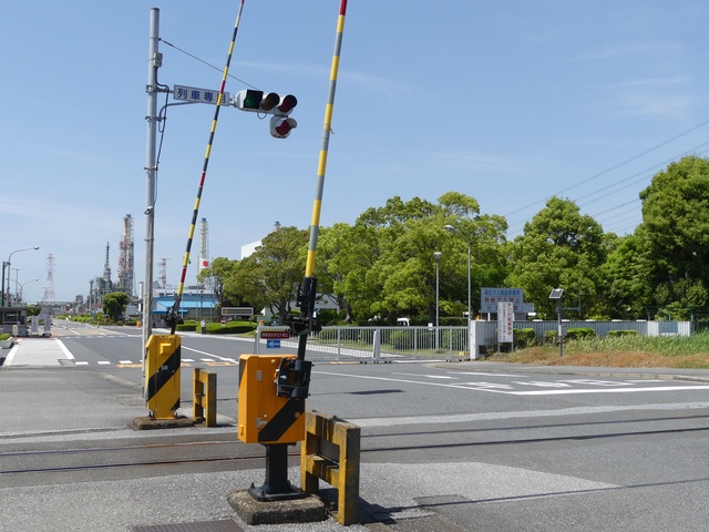 付近は工業地帯で、大きな国道沿いに臨海鉄道が通っており、自動車通行量の多い踏切では一時停止を免除しないと国道への流出入に影響が出るため、信号交差点に近接し、かつ通行量の多い踏切に限り踏切信号が設置されています。
