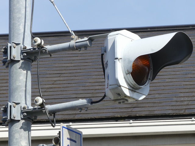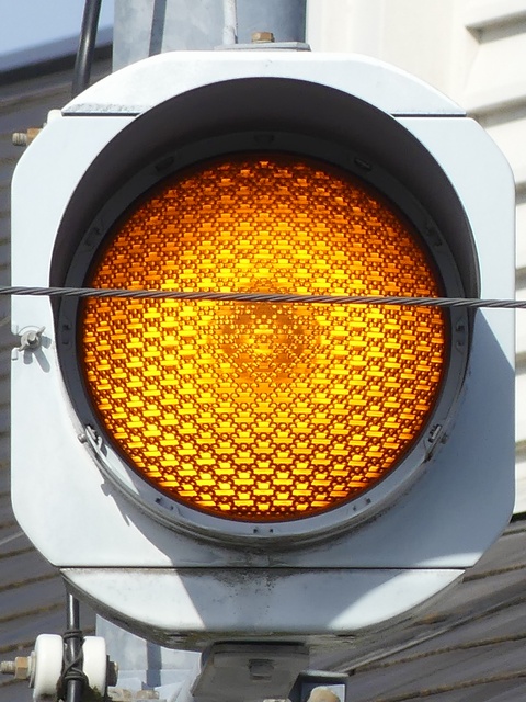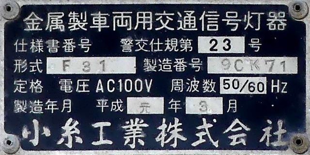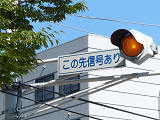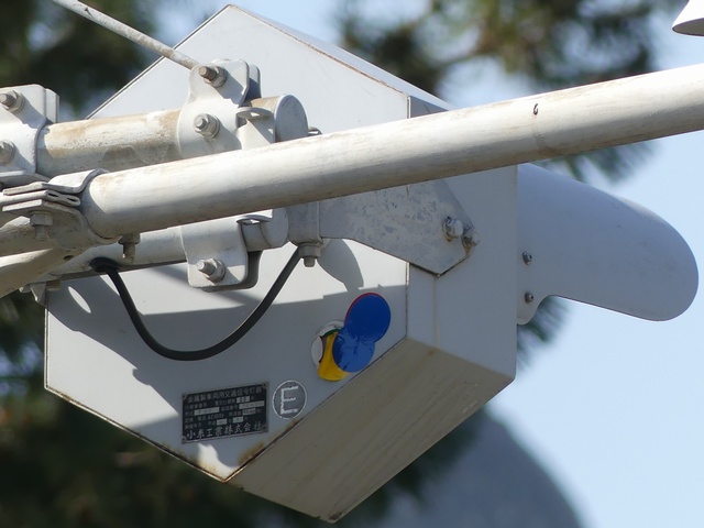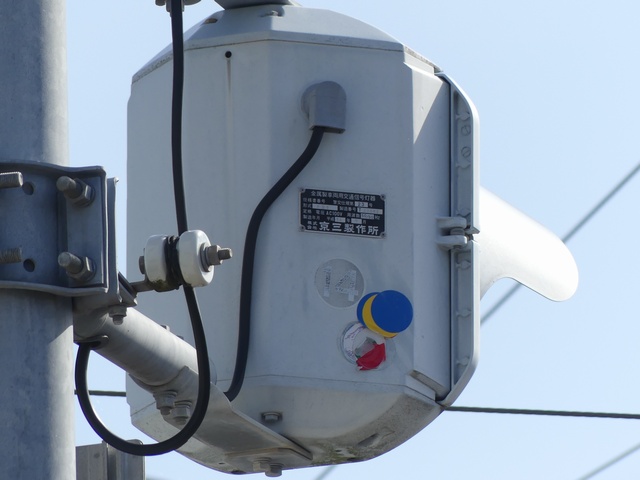 従道路側の予告灯器は一体型灯器を使用していますが、主道路側では抱え込み縦型で設置するためか耳ありの分離型灯器を使用しています。京三製作所製分離型灯器にスフェリカルレンズという珍しい組み合わせの灯器です。