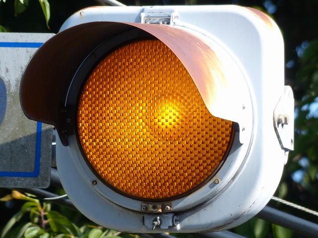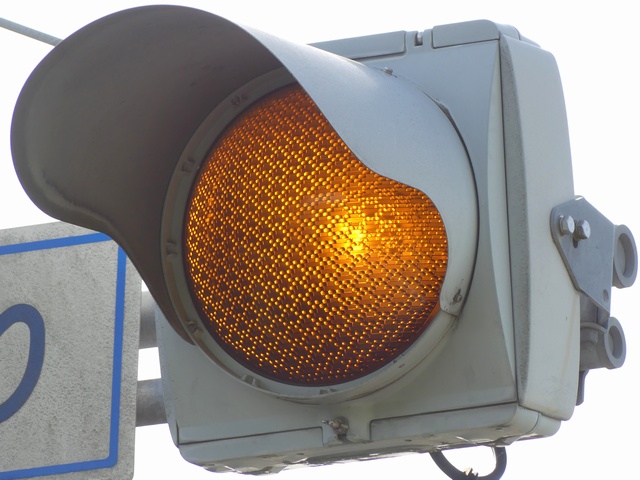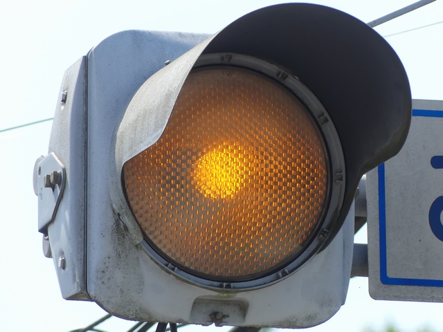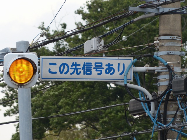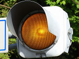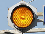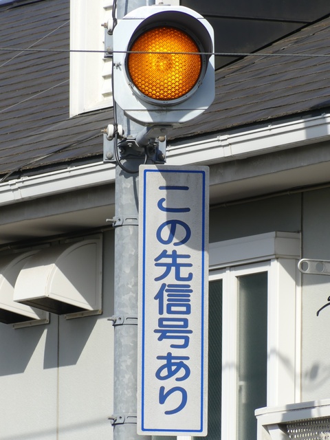 千葉県の予告信号は、1位式で前方の信号にかかわらず常時黄点滅しています。