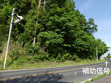 交差点の手前に豪雪型縦型設置で「補助信号」の灯器が設置され、さらに手前に「この先信号あり」の1位式灯器が設置されており、二重で予告が行われています。
