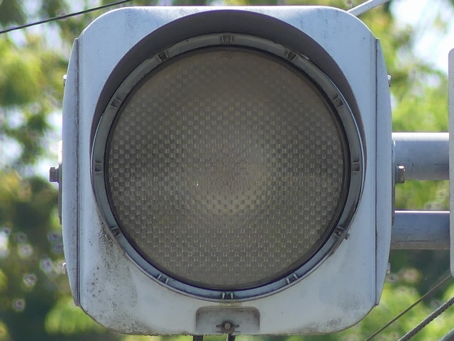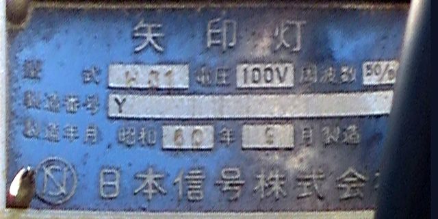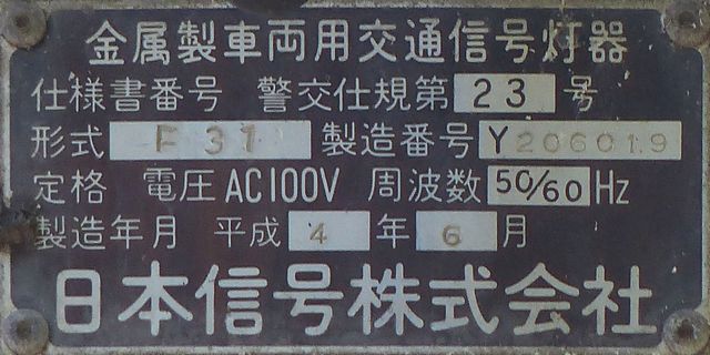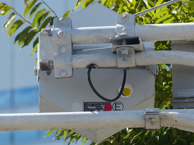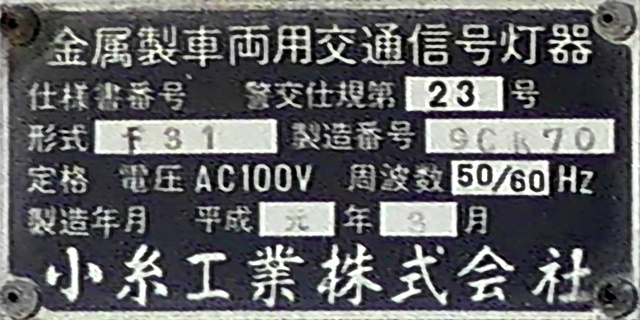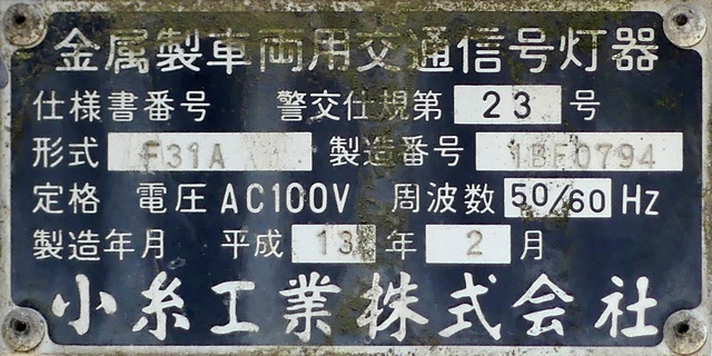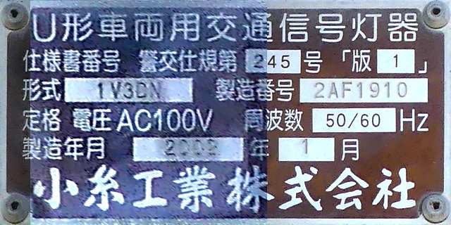 従来の電球式灯器のソケットに「TYライト(TYCタイプ)」を装着したタイプです。背面には「LED12」と書かれた電球のイラストのシールが貼られており、平成12年度にTYライトに交換されたと思われます。
