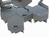 幕張新都心一帯に設置されているデザイン灯器です。車両用灯器は、正六角形の灯箱を3つつなげて3位式としています。