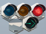 車両用縦型灯器も正六角形の灯箱を3つつなげて3位式としています。