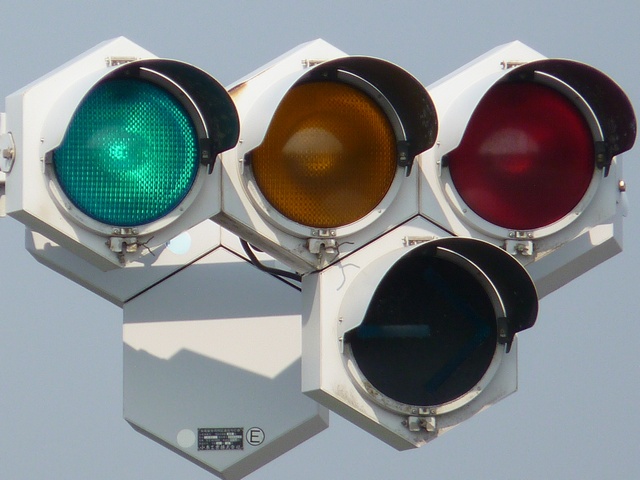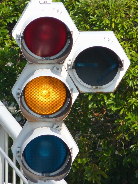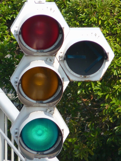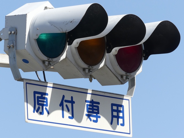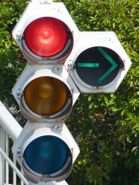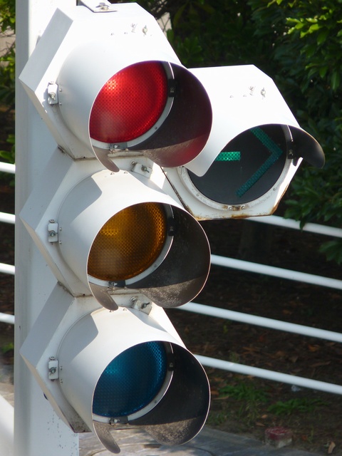 縦型灯器も同様に右折矢印灯器が黄灯と赤灯の右にうまく収まっています。