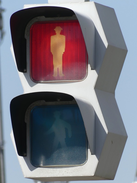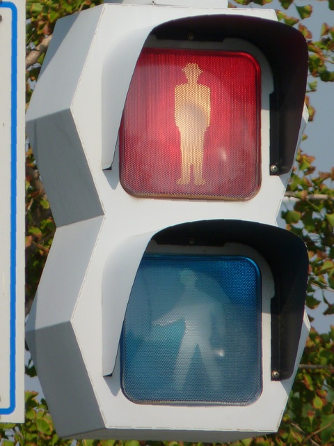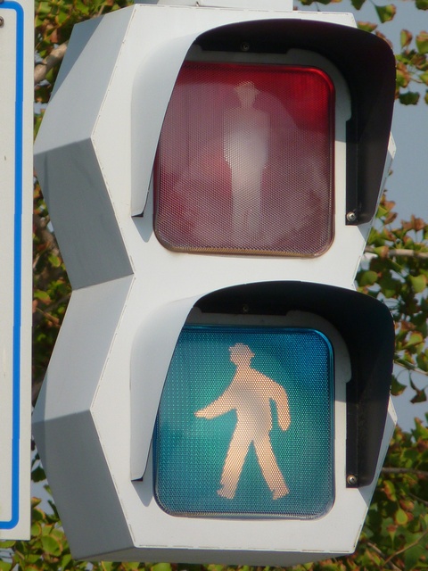 歩行者用灯器も、正六角形を2つ組み合わせたような形状ですが分離されておらず一体型です。