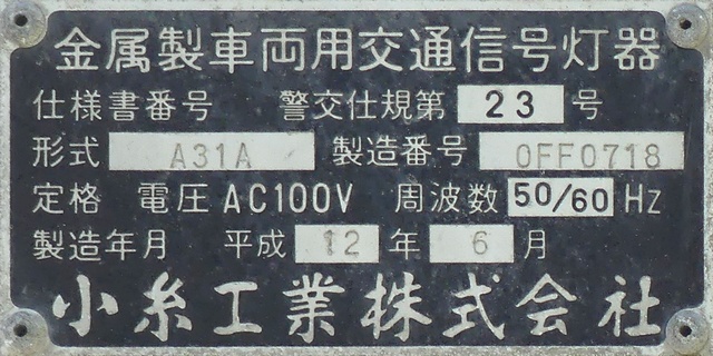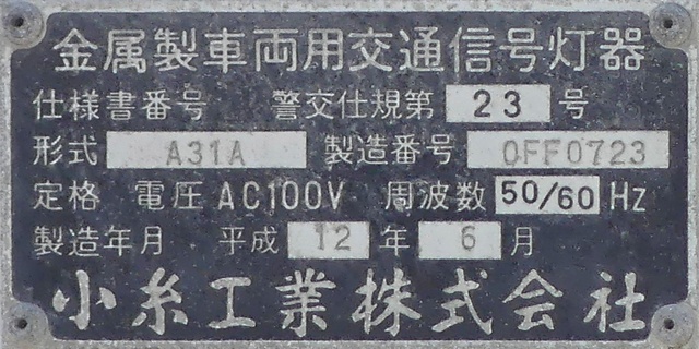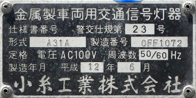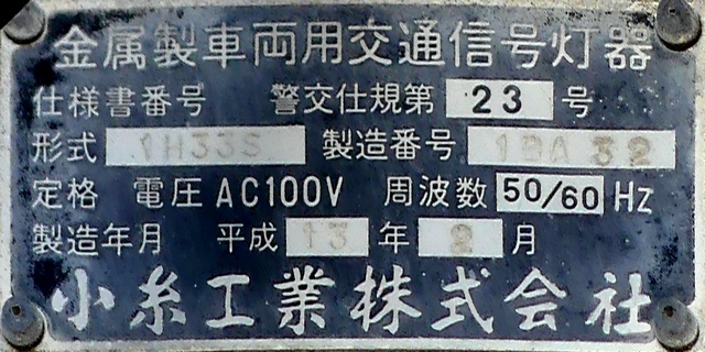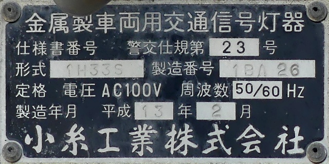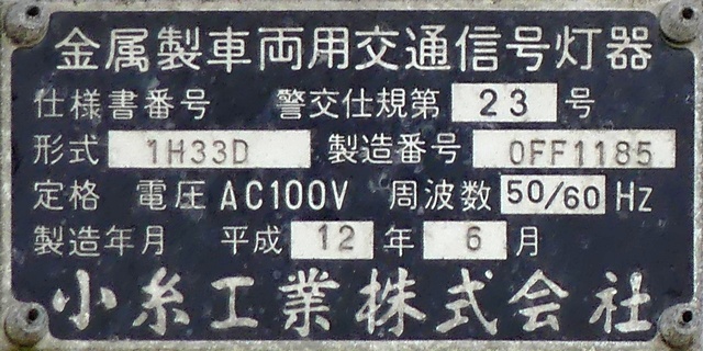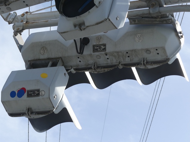 一部の灯器はTYライトの劣化のためか、点灯時間の長い青灯や赤灯がTYライト(TYDタイプ)に交換されています。現に赤灯が一部素子切れを起こして灯火の暗い灯器もあります。なお、TYライトを交換しても背面の「LED13」ラベルの貼り替えはしていません。