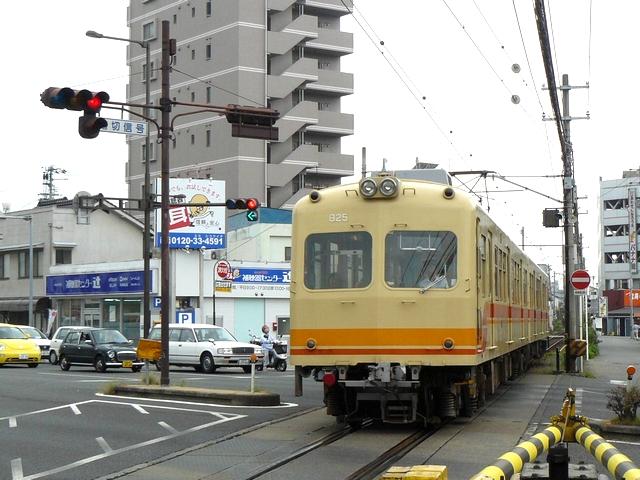 十形交差点のすぐ脇を、線路が斜めに通っているため、交差点の西と南に隣接して踏切があります。踏切信号は通常黄点滅で、標示板には「踏切用信号」の表示が出ます。列車が接近すると「列車接近中」の表示になり、赤信号になります。おまけの赤は普段、点灯しません。なお交差点用信号の一部にも踏切信号をかねているものがあり、「踏切用信号」の表示が出ます。おまけの赤も設置されています。交差点用の信号は列車が接近すると、車両が踏切のほうへ進入できない信号サイクルになります。