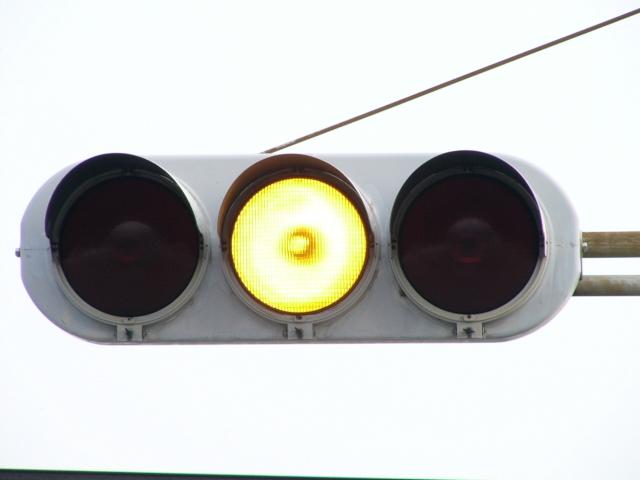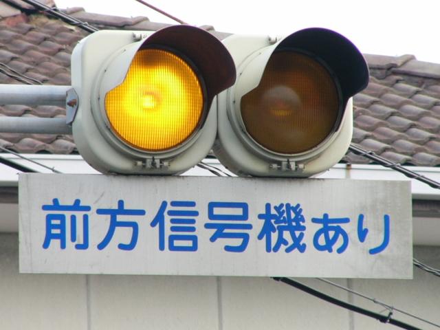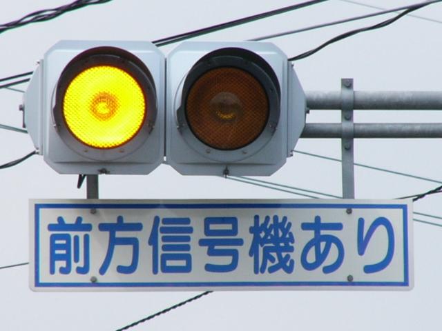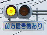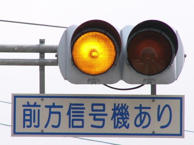愛媛県の基本的な予告信号です。前方の信号に関係なく常時、左右の黄が交互点滅します。