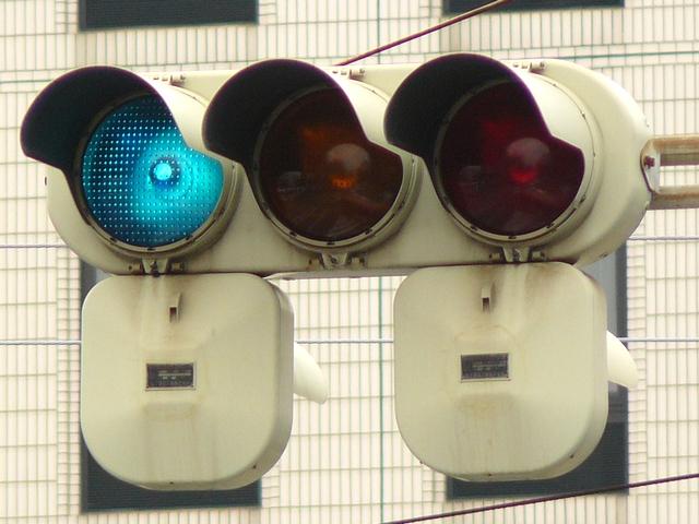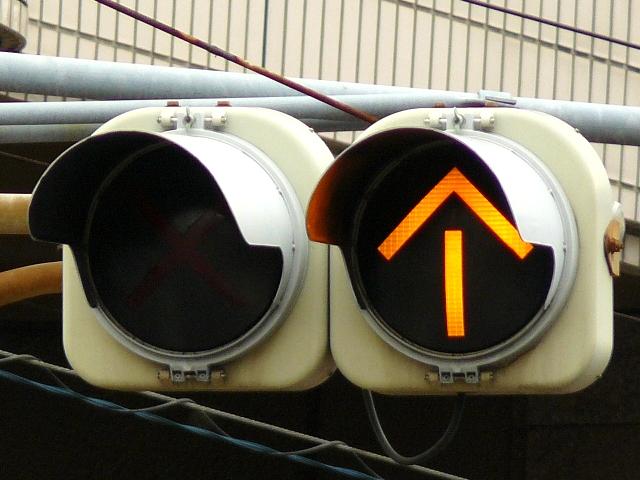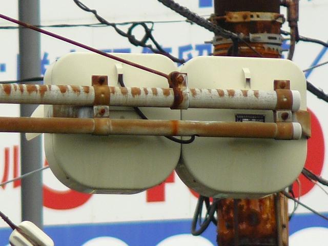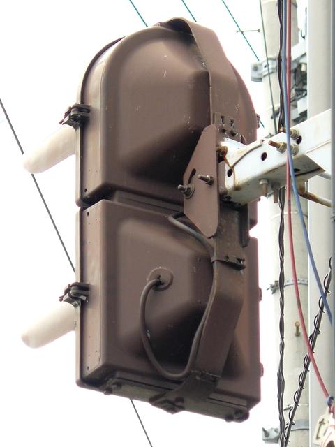 1位式灯器を2つつないで2位式にしていますが、灯器の向きが通常とは上下逆になっています。