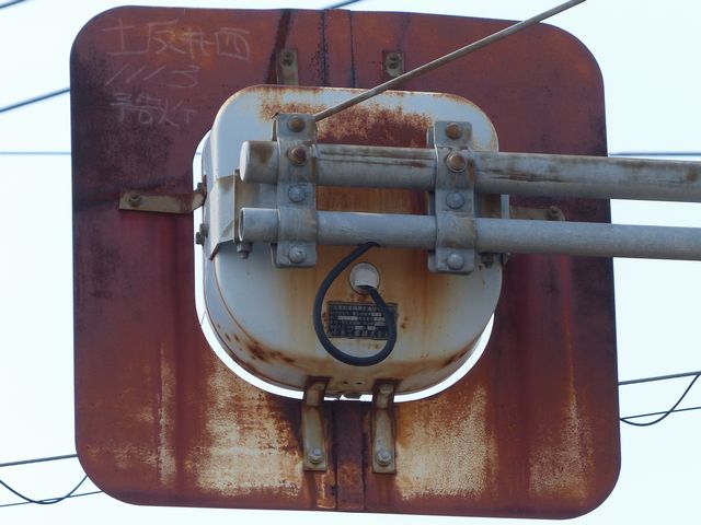 背面板も標示板もないものです。この先に信号交差点があるので、「予告信号」と思われます。