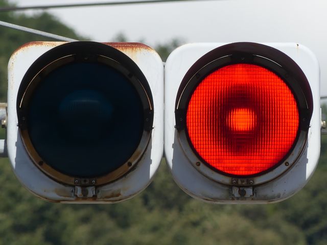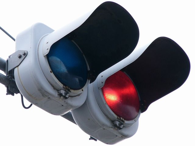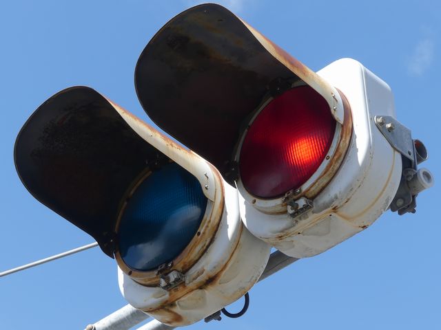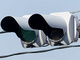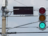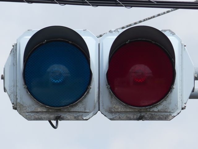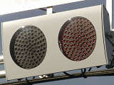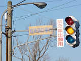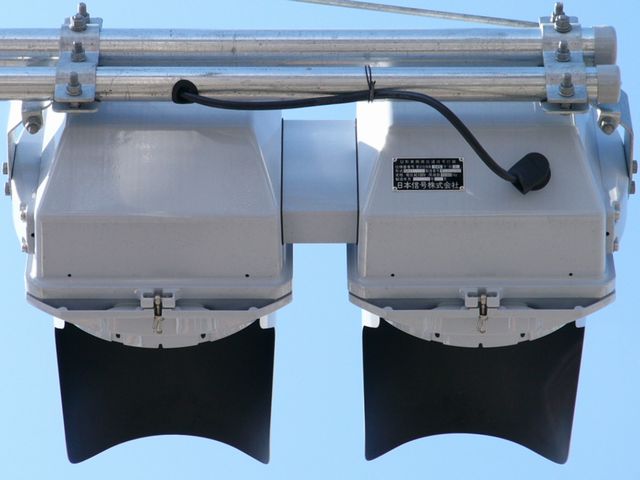 最近では、道路側に通常黄点滅の「緊急車出動用」信号を使用して、消防署側にはこの2位式灯器を設置しないケースが増えています。おそらく消防署側から道路側の信号が見えやすいかどうかの問題でしょう。