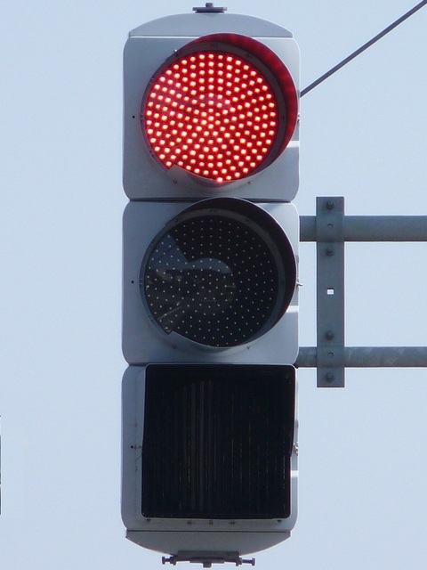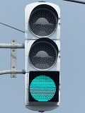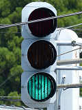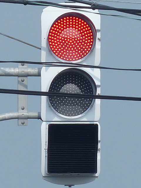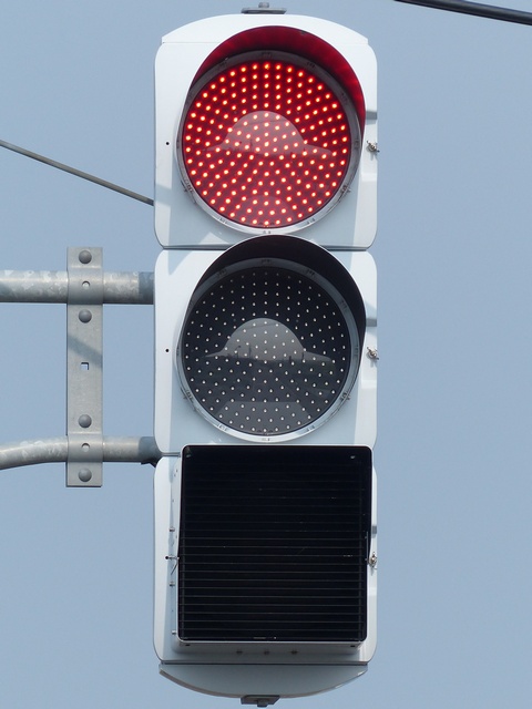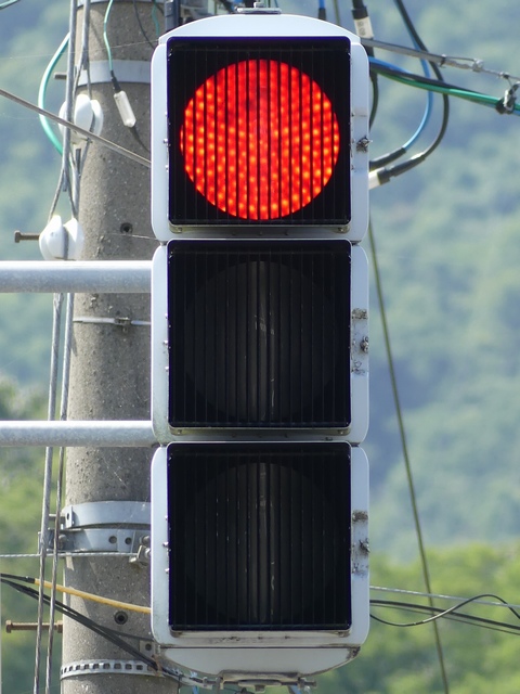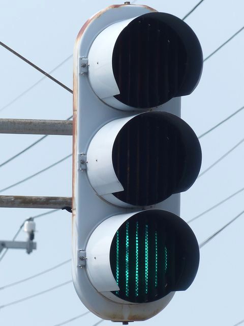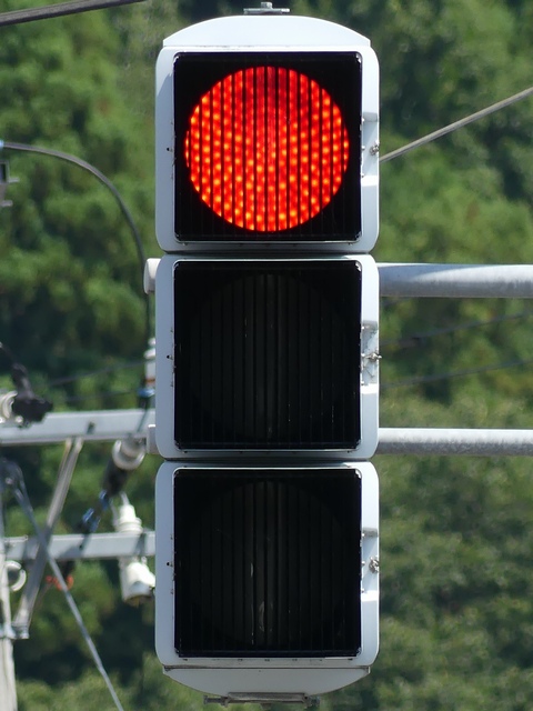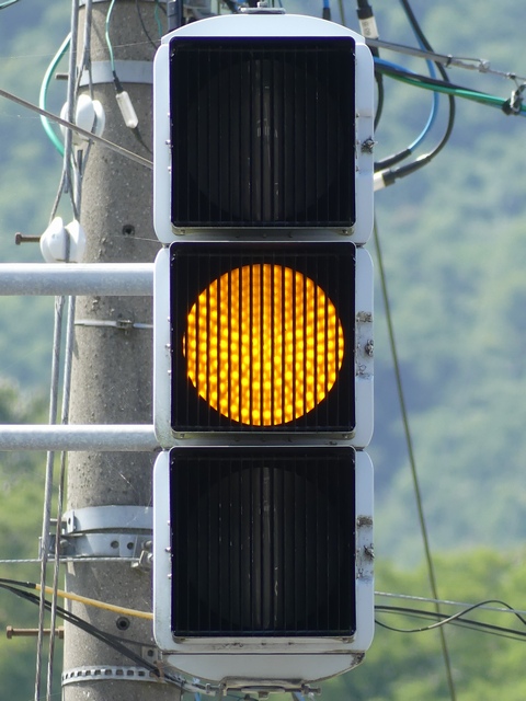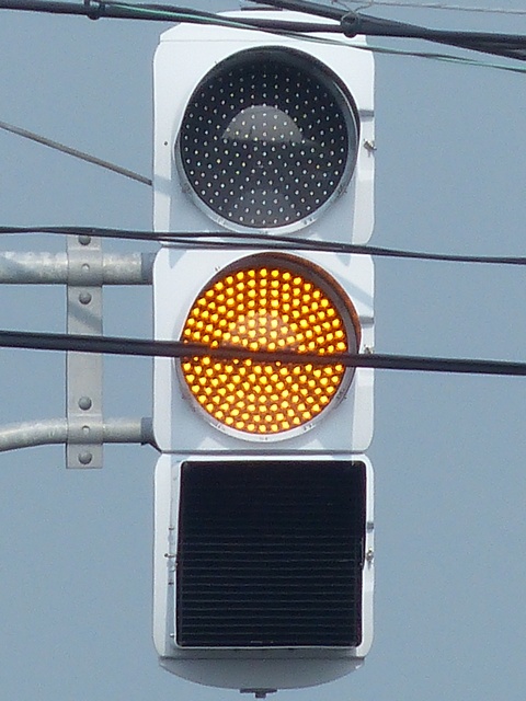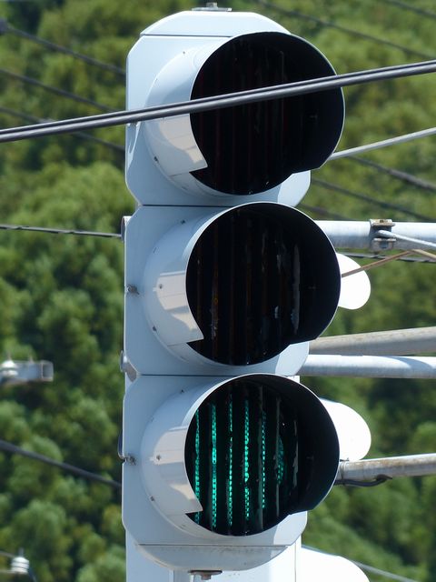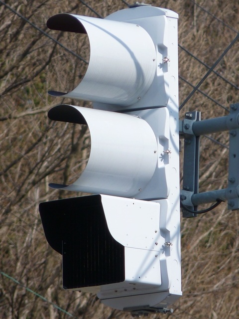 県内でSD制限フードによる左右制限は道路が平行になっている交差点か、かなり角度のきつい鋭角交差点のみで、この程度の鋭角の交差点では使用しません。この交差点の西隣の交差点は同程度の鋭角交差点ですが、特に誤認防止策はとられておらず、東隣の交差点はここよりきつい鋭角交差点ですが誤認防止策は片かくしフード程度です。 特に北進用灯器は交差点から奥まったところに設置されており、交差道路からの誤認のおそれはなさそうです。ただし、信号交差点のすぐ近くに交差する道路からの一時停止規制見落とし防止対策の可能性はあります。 交差道路は片側2.5車線のバイパスであり交差点は広いので、近隣住宅への防眩対策も考えにくいです。 薄型灯器に更新される前は特に誤認防止対策はとられていなかったと記憶しています。 越前警察署管内では下記の試験灯器が設置されたことがあるので、この灯器も試験設置の可能性がありますが、同時期に県内の複数箇所で鋭角交差点の誤認防止のための本設置もあり、試験設置も考えにくそうです。 ・フードに電熱線の入った灯器 ・縦型フラット型灯器 ・カプセルカバー ・赤のみカプセルカバー ・赤のみロングフード