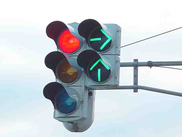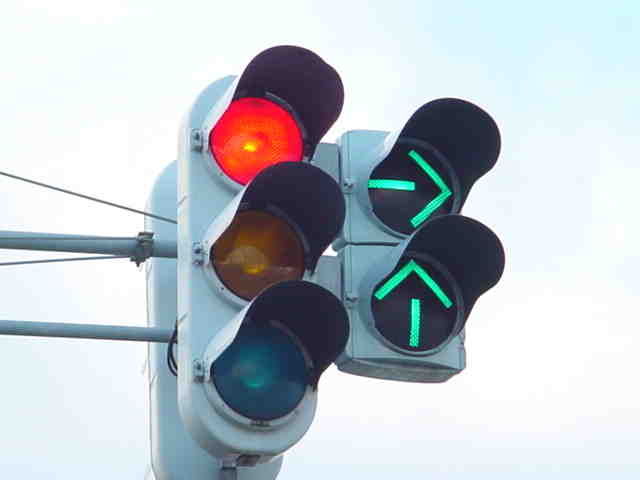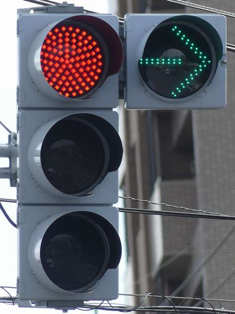 横型設置の場合、矢印灯器は3色灯器の下に設置しますが、縦型設置の場合、右隣に設置します。警察庁の通達により、赤の隣に右折矢印、黄の隣に直進矢印、青の隣に左折矢印を設置することになっています。
