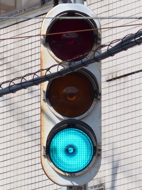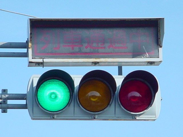 その後、フラット型灯器に交換されました。フラット型灯器は横型が標準です。