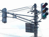 豪雪エリアでも450mmレンズ灯器は横型で設置されますが、交差点手前がカーブになっている等で車道外にはみ出して設置する場合は高さ基準が緩和されるのか縦型で設置できるようです。