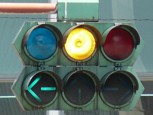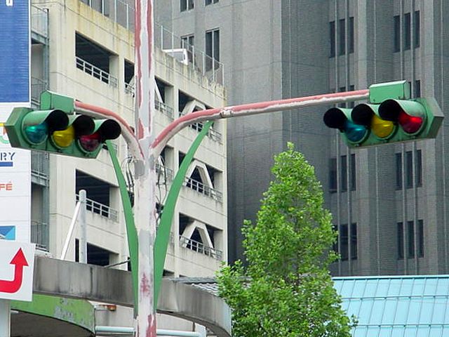 福井駅前交差点の従道路用仮設補助灯器として設置されていたデザイン灯器です。