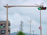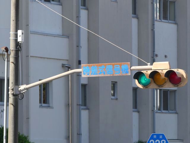 T形交差点の突き当りに設置されているものは、以前は矢印灯器が設置されていましたが、信号サイクルの変更により撤去されています。