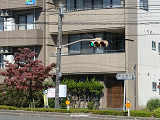 この交差点には専用デザイン柱が1つだけ設置され、ほかと同じ灯器が設置されていましたが、現在は6角形デザイン灯器に交換されています。
