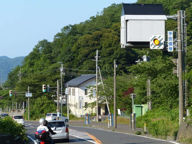 昭和61年度工事で信号機が新設された交差点です。車両用灯器は樹脂製灯器が、歩行者用灯器は日本信号製のFRP製灯器が設置されていました。その後、フラット型灯器に交換されました。