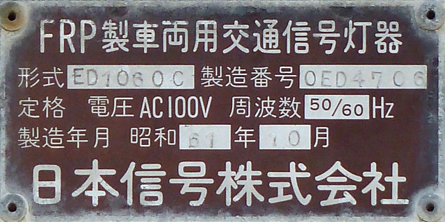 県内で最後まで残ったFRP製車両用灯器と思われます。その後、低コスト灯器に交換されました。
