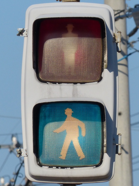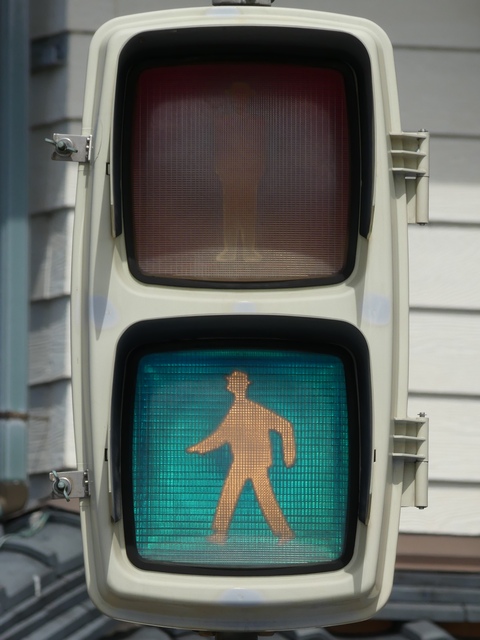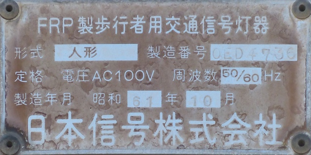 県内で最後まで残ったFRP製歩行者用灯器と思われます。その後、薄型灯器に交換されました。