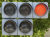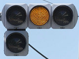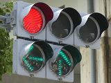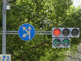 対向側は右折車分離式時差式信号で、こちら側が赤信号になってから青信号になります。