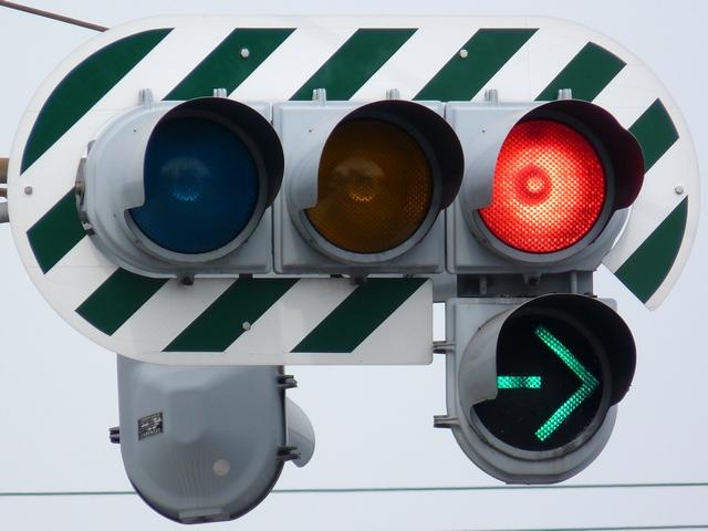 ただし、信号が黄から赤になったときに、通常交差点内で右折待ちしているドライバーの注意は、対向車や右折先の道路状況に向くと思うので、この時点で「対向車に注意」と表示しても意味がない(見てもらえない)ような気がします。