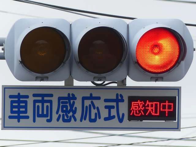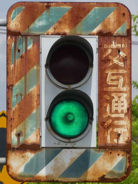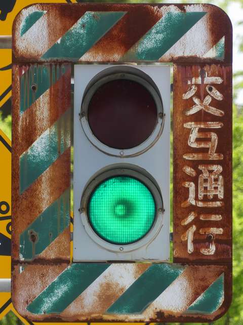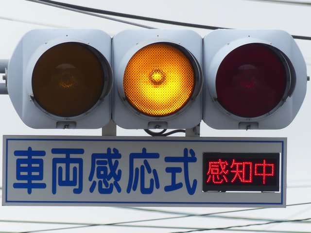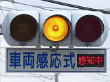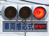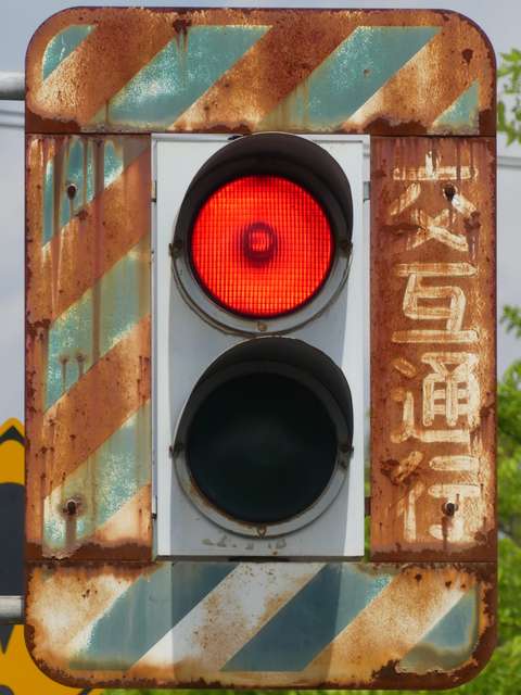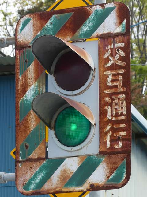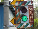 「交互通行」用の灯器は2位式で、青からいきなり赤になります。