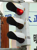 信号交差点に隣接する踏切の「踏切用」信号です。交差点から踏切に向かう側のみに設置されています。信号サイクルは通常下赤点滅で、列車接近時に黄・・・上赤点灯になります。また交差点の主道路(線路と平行する側)の信号が黄から全赤になる間はそれと同じサイクルになります。