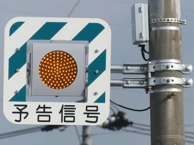 前方の信号が黄、赤の時に点滅し、青の時は消灯しています。