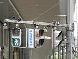 一組のアームに2方向の歩行者用灯器が設置されています。狭い交差点に限らず、福島県内ではよく見かけます。