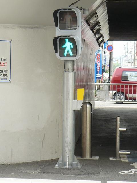 高架道路下の低い位置に設置されている歩行者用灯器です。