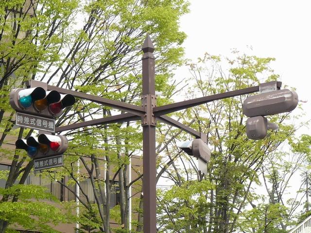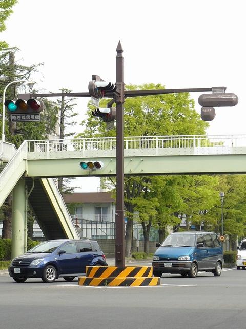 交差点の真ん中に信号柱を設置し、4方向の灯器を設置しています。