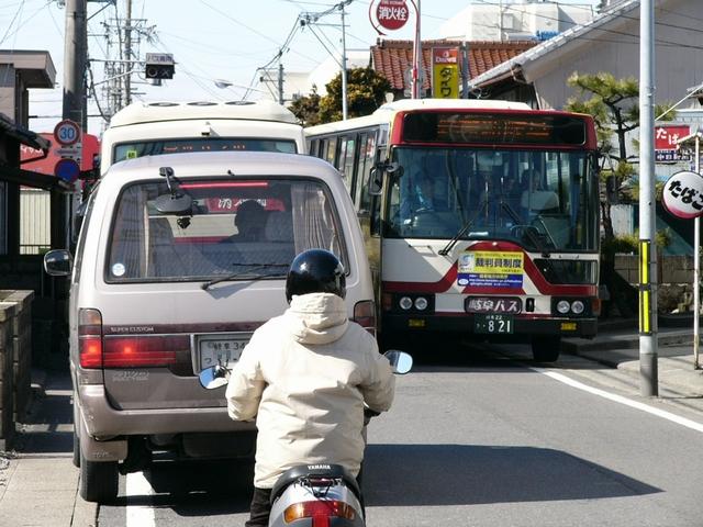 ご覧のとおり、直線部分でも路線バス同士のすれ違いは困難なので、交差点で鉢合わせしてしまったら身動きがとれなくなってしまうでしょう。