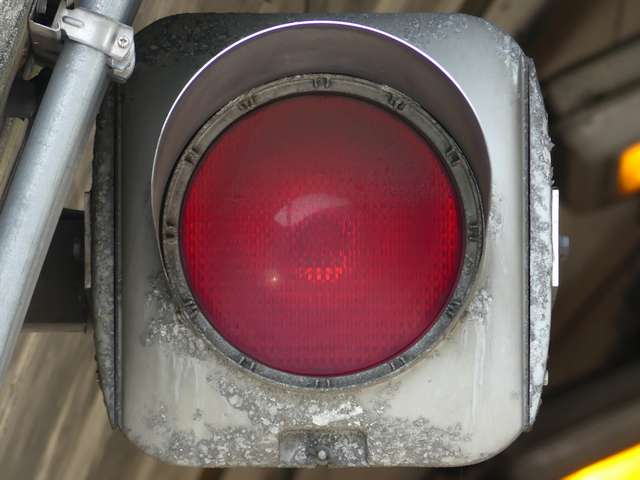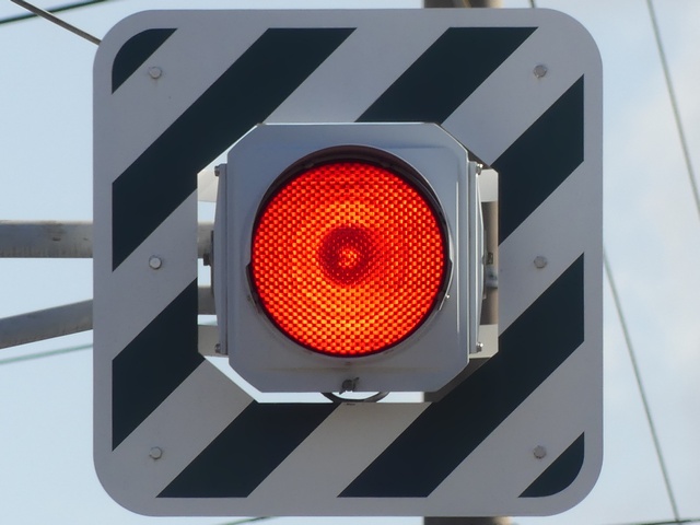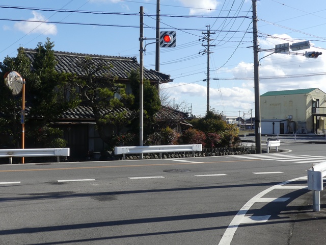消防分団車庫の前に設置されています(車庫寄りの車線の車両に対してのみ)。消防車が出動するときに点灯すると思われます。
