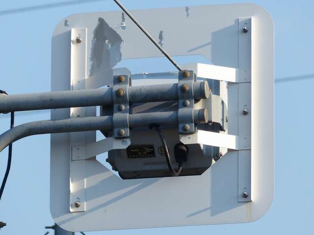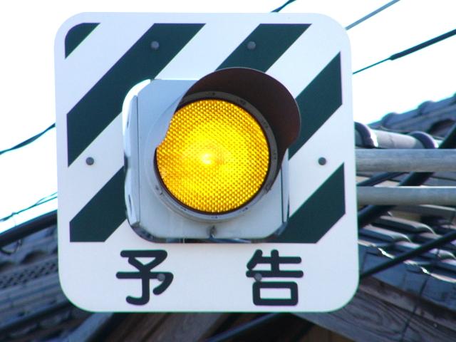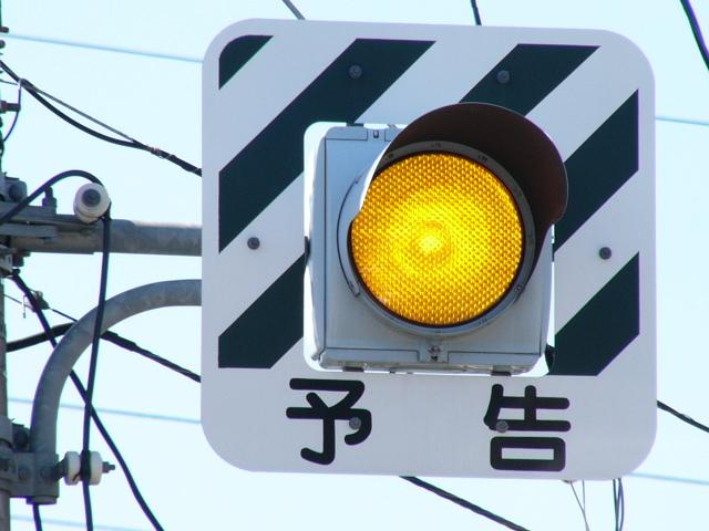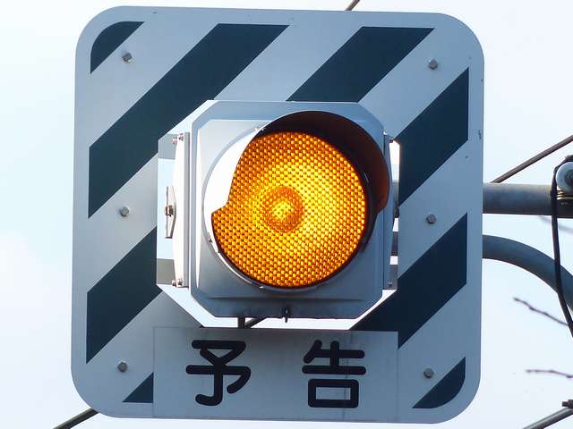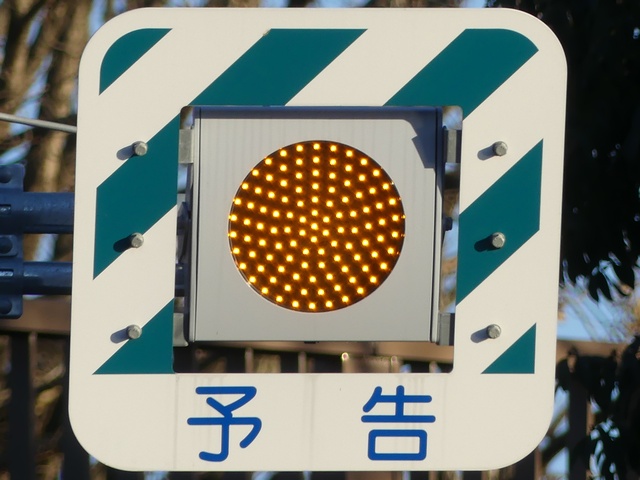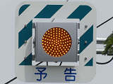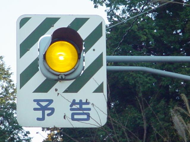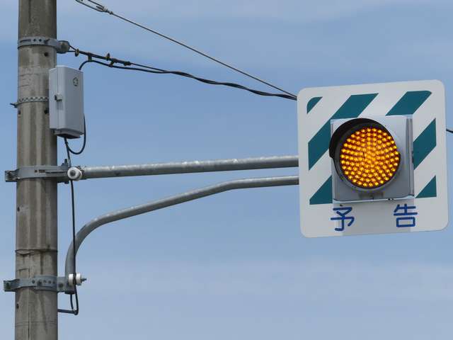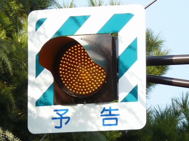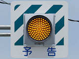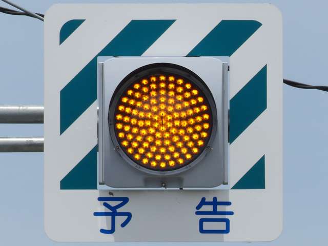 前方の信号が黄、赤の時に点滅し、青の時は消灯しています。