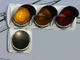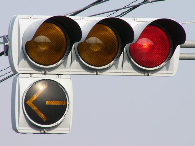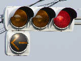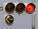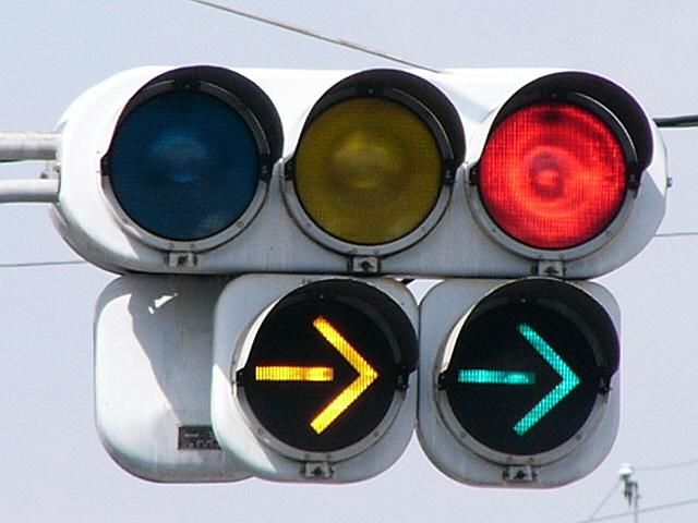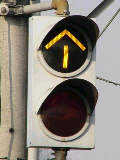 黄矢印信号のある信号交差点で使用されています。黄矢印が出ている時以外に点灯します。