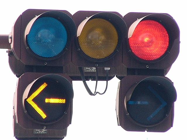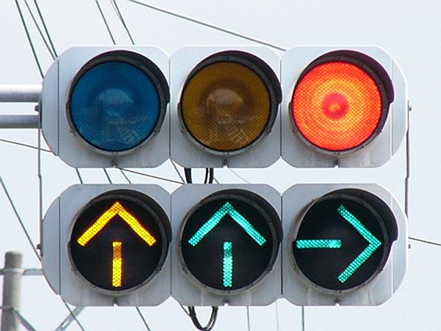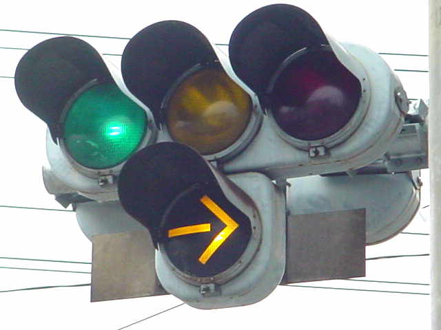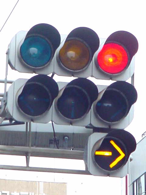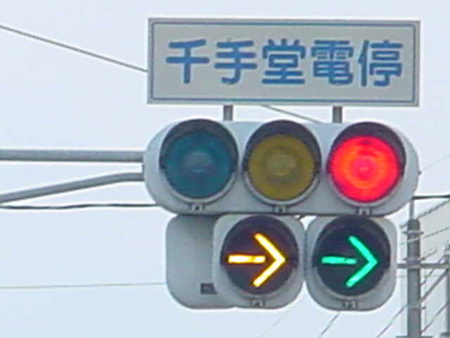 そういった点で、この矢印の配列はあまり適切ではないと言えるかもしれません。この配列では、スムーズに右折できるように見えてしまいますからね。右折矢印よりも右側に黄矢印を配置した方が良いかと思われます。(電車はすでに廃止されていますが・・。)