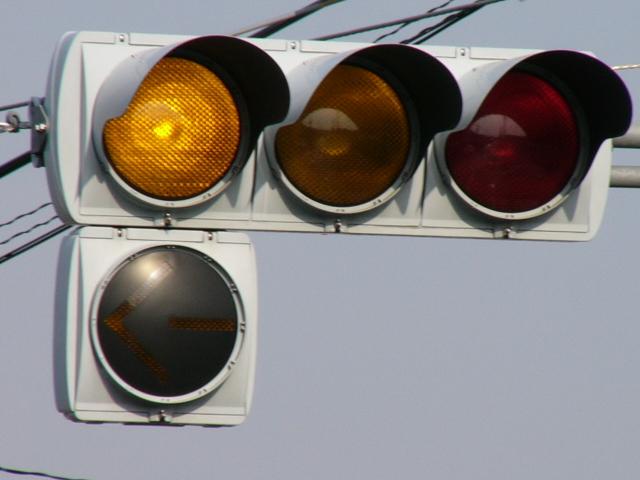 大きな交差点には、450mmの黄矢印灯器もあります。