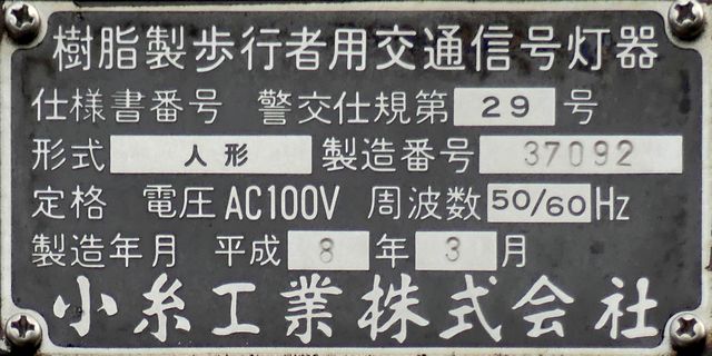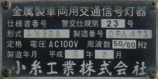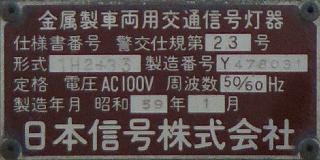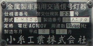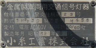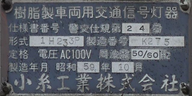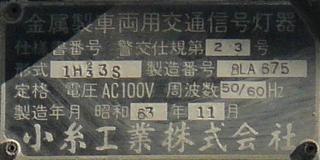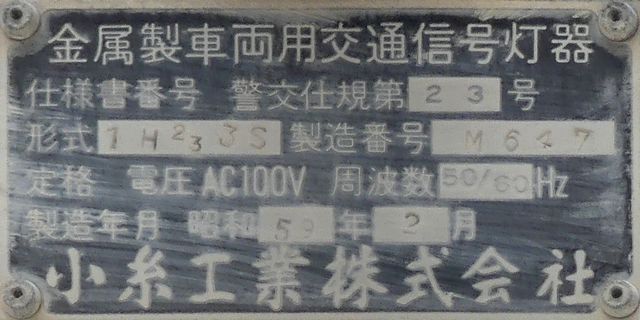 小糸工業製のブツブツ模様レンズの丸型灯器です。上のものとは銘板が微妙に異なるので載せておきます。