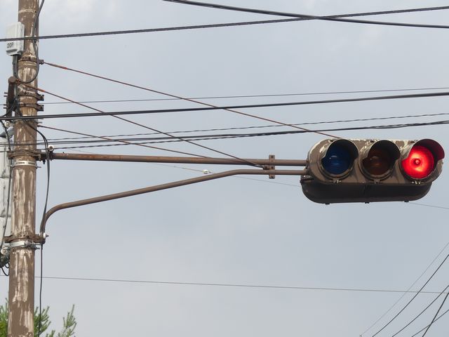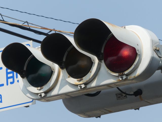 日本信号製の群馬仕様濃色網目模様レンズの丸型灯器です。