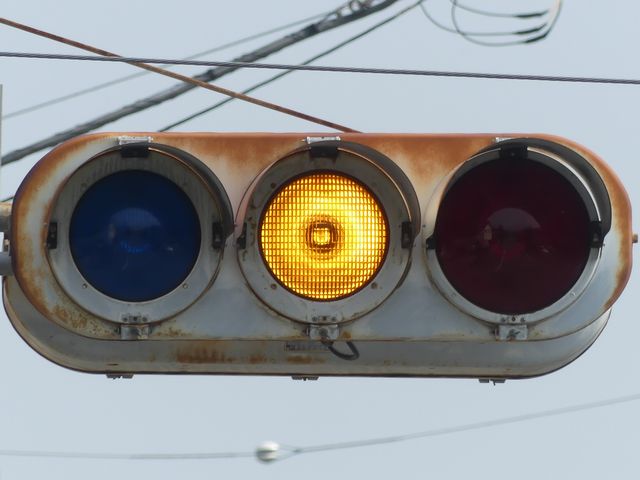 日本信号製のブツブツ模様レンズの丸型灯器です。