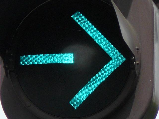 従来の電球式灯器の電球とレンズを交換したものだと思われます。矢印灯器もTYライトです。
