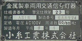 小糸セパ 金属製 警交仕規23号 形式1H33A TYライト