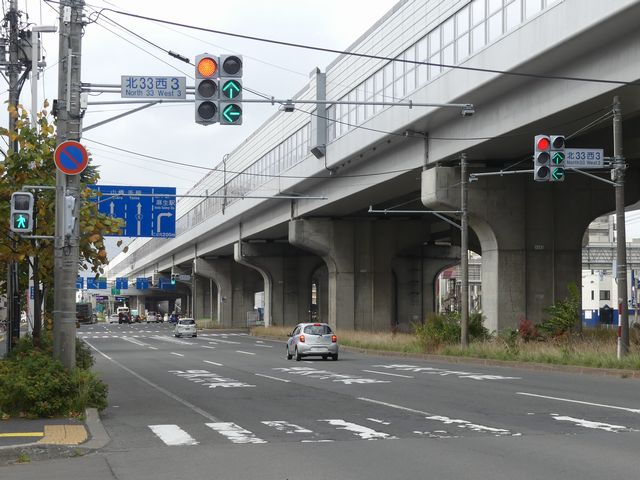 北海道では、3方向の矢印信号を使用する場合でも基本的に3位式灯器を使用せず、1位式の矢印灯器を3つ並べて設置します。