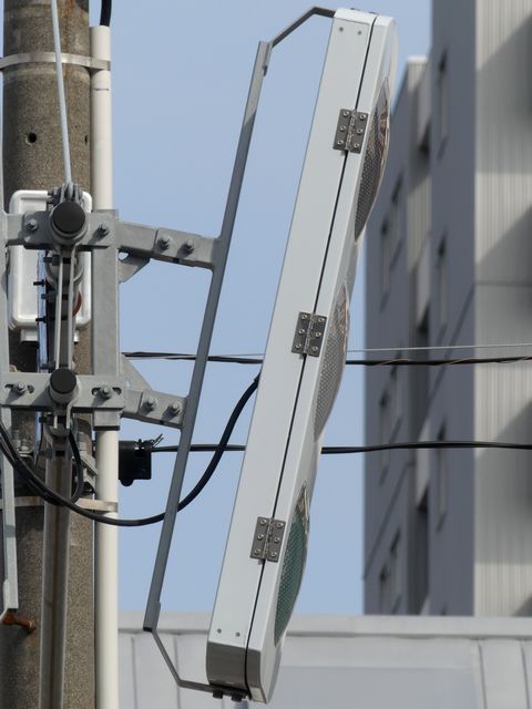 この交差点の北進・南進用補助灯器として2基設置されています。(当初、この交差点の全方向の補助灯器として設置されていたようですが、東進・西進用補助灯器の2基は別の場所で転用されているそうです。)